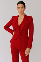 يتكون من سترة مصممة، وصدرية راقية، وسروال ضيق، يقدم هذا الزي مظهرًا أنيقًا واحترافيًا. مثالي للمكتب، والمواعيد الرسمية، أو الفعاليات الرسمية، يجمع بين الأناقة والراحة على مر الفصول.