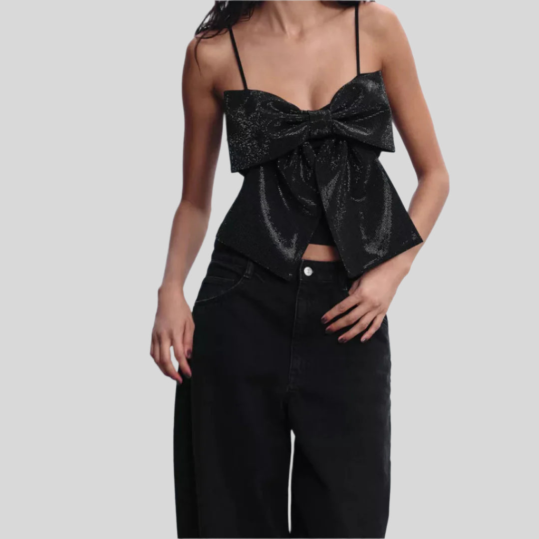 Tento elegantní top má třpytivý design doplněný o výraznou mašli. Ideální pro zvláštní příležitosti nebo pro přidání sofistikovaného prvku do vašeho každodenního outfitu. K dispozici v několika velikostech, aby vyhovoval všem postavám.