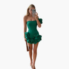 Αυτή η κομψή ασύμμετρη φόρεμα τραβάει όλα τα βλέμματα με τον γυμνό ώμο και τις λεπτές φούστες. Η μακριά και ρέουσα γραμμή αναδεικνύει τη σιλουέτα προσφέροντας ταυτόχρονα μια πινελιά εκλεπτυσμένου στυλ. Ιδανική για τις επίσημες βραδιές σας ή ειδικές εκδηλώσεις, ενσαρκώνει την σύγχρονη κομψότητα.