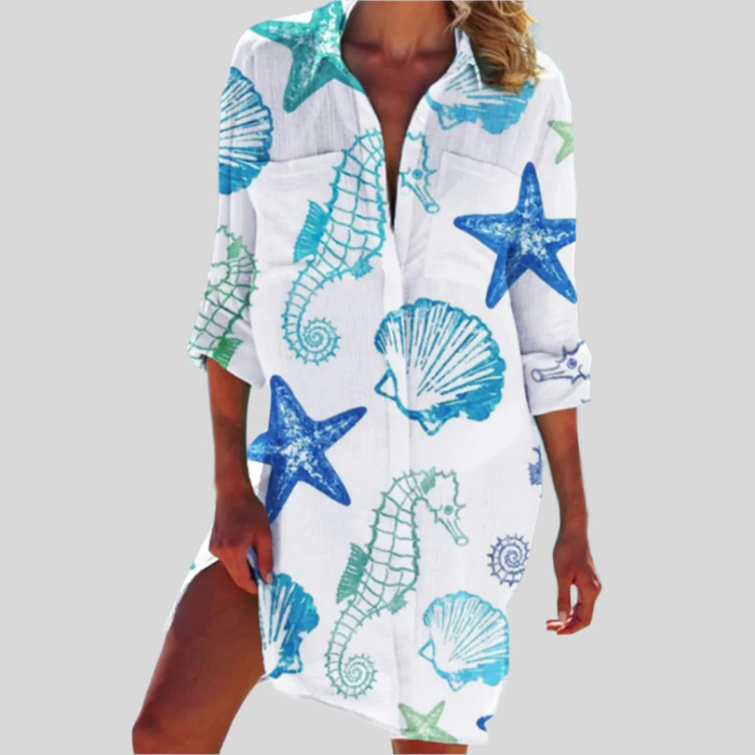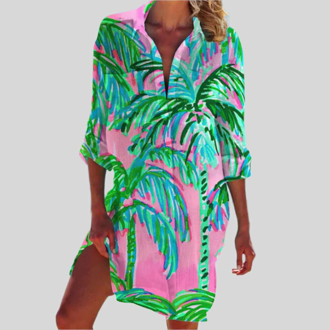 Ολίβια | Φόρεμα με κουμπιά καλοκαιρινό με μακριά μανίκια