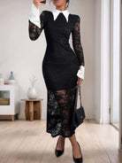 Χάνα | Κομψό Μίντι Φόρεμα Με Αντίθετο Γιακά Και Μακριά Μανίκια