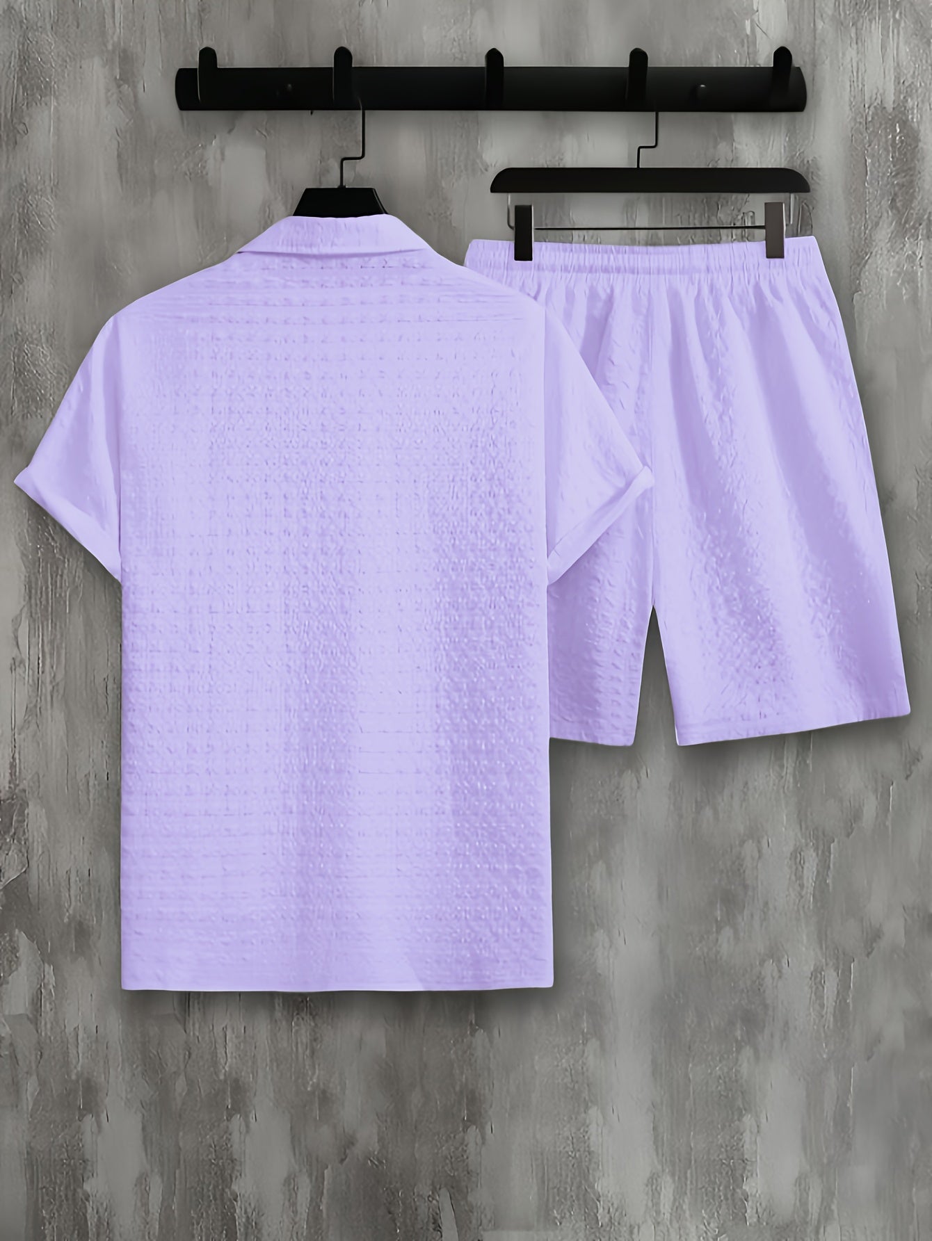 This outfit combines a short-sleeved shirt with a button closure and adjustable drawstring shorts. It offers a relaxed fit for optimal comfort. Perfect for various occasions, it combines style and practicality.