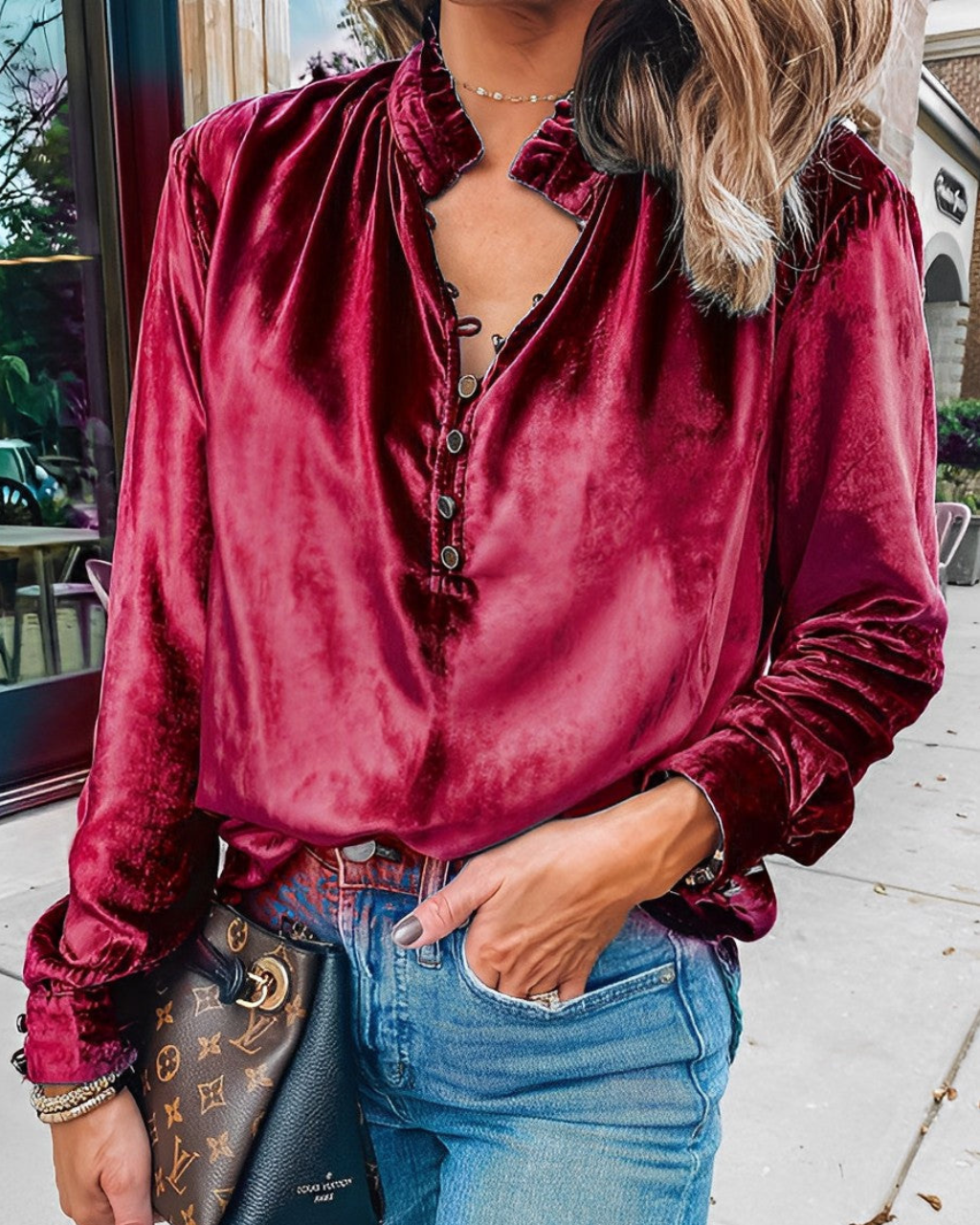 Viviane | Tyylikäs Naisten Paita – Rypytetty Kaulus ja Tyylikäs Napitus