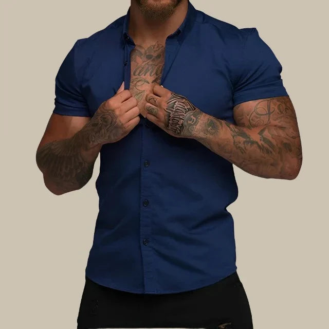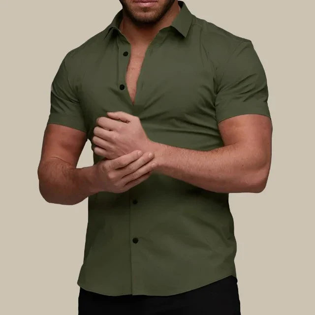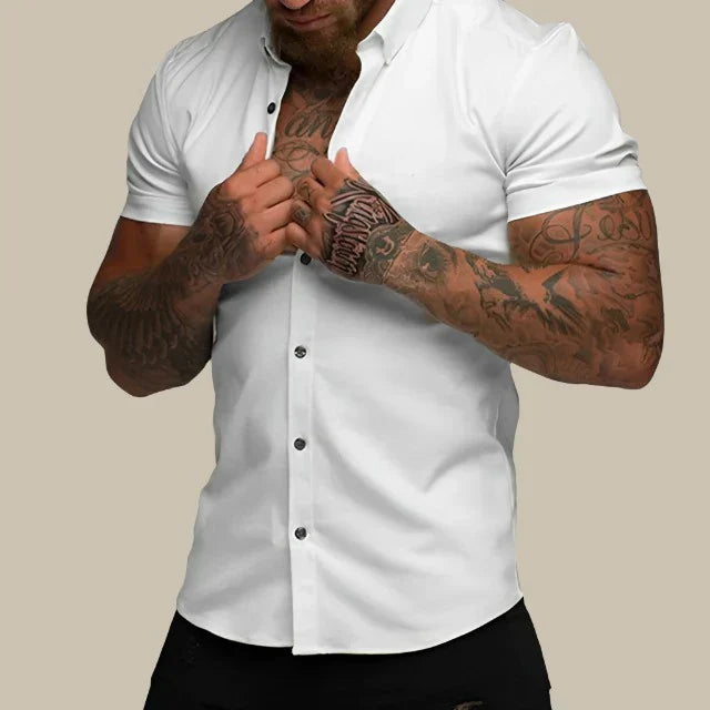 חולצה זו, המותאמת לגוף, משלבת אלגנטיות מודרנית ונוחות. עשויה מחומרים אלסטיים פרימיום, היא מציעה גמישות ומראה מעודן. השרוולים הקצרים מספקים חיתוך אלגנטי ונינוח, מושלם לימים חמים.