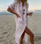 שמלות החולצה האלגנטיות מציעות חיתוכים גבוהים ופרטים עם כפתורים, ומספקות סילואט מודרני. מושלמת לאירועים שונים, היא משלבת סגנון ונוחות.