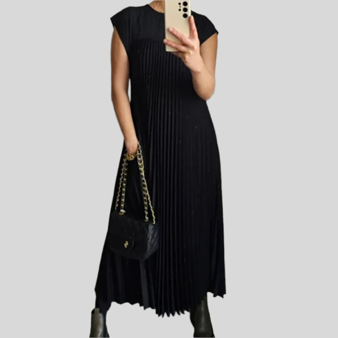 Ez a pliszírozott ruha előnyös sziluettet kínál. Több színben elérhető, minden alkalomhoz illeszkedik. Időtlen dizájnja tartós eleganciát biztosít.