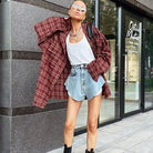 - 多目的なルックのための時代を超えたチェック柄デザイン。