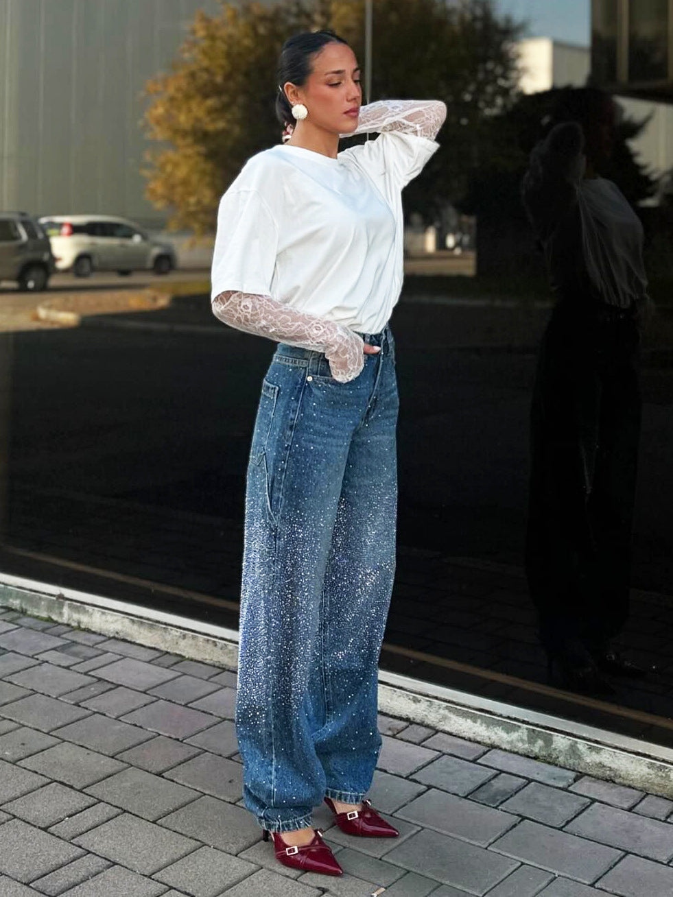 May | Modebroek – Relaxte Pasvorm en Glanzende Afwerkingen