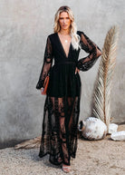 Denne lange sorte kjole indkapsler den bohemske ånd med sine delikate broderier og sit flydende snit. De lange ærmer giver komfort og lethed, mens silhuetten subtilt fremhæves. Et elegant og alsidigt stykke til alle dine anledninger.
