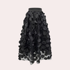 Această fustă lungă oferă o siluetă rafinată și feminină. Disponibilă în verde, negru și violet, se potrivește pentru diverse ocazii.