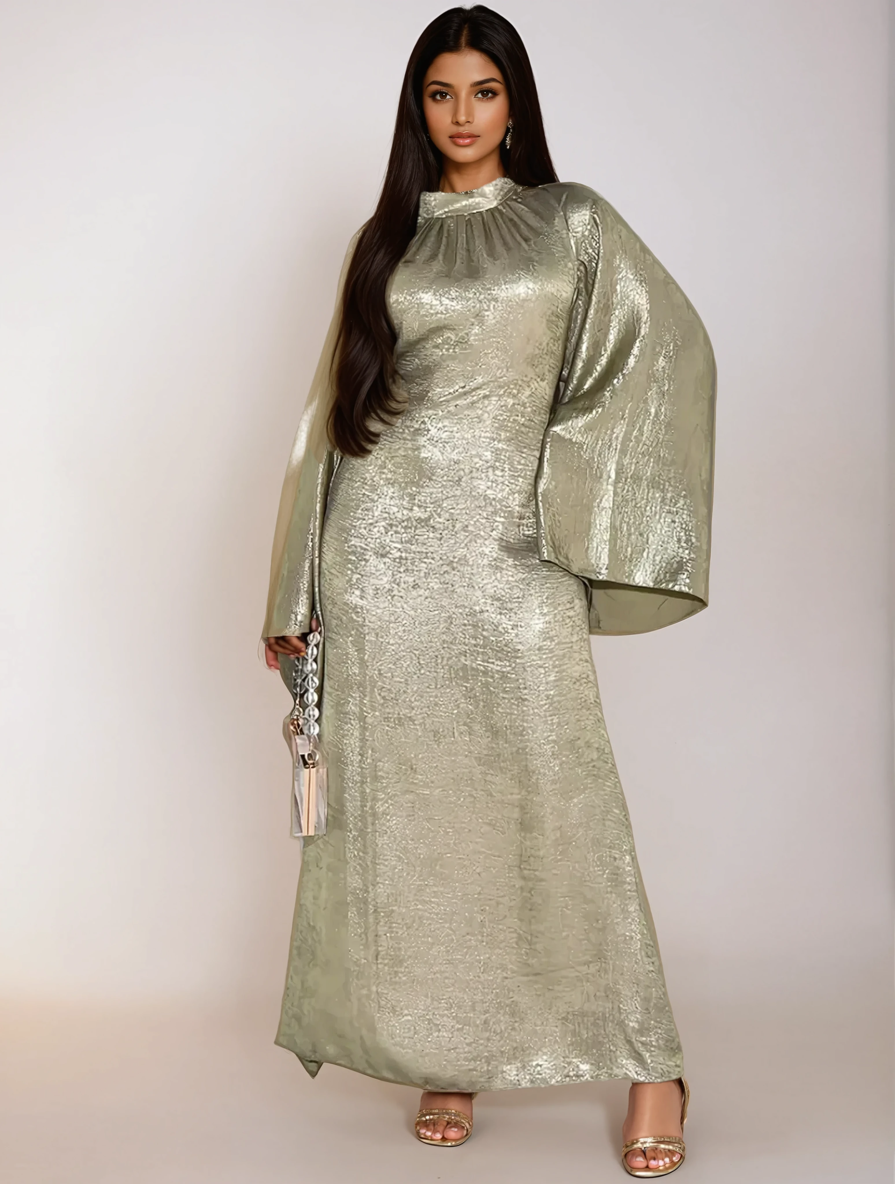• Vysoký výstrih a rozšírené rukávy pre diskrétnu eleganciu