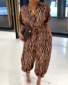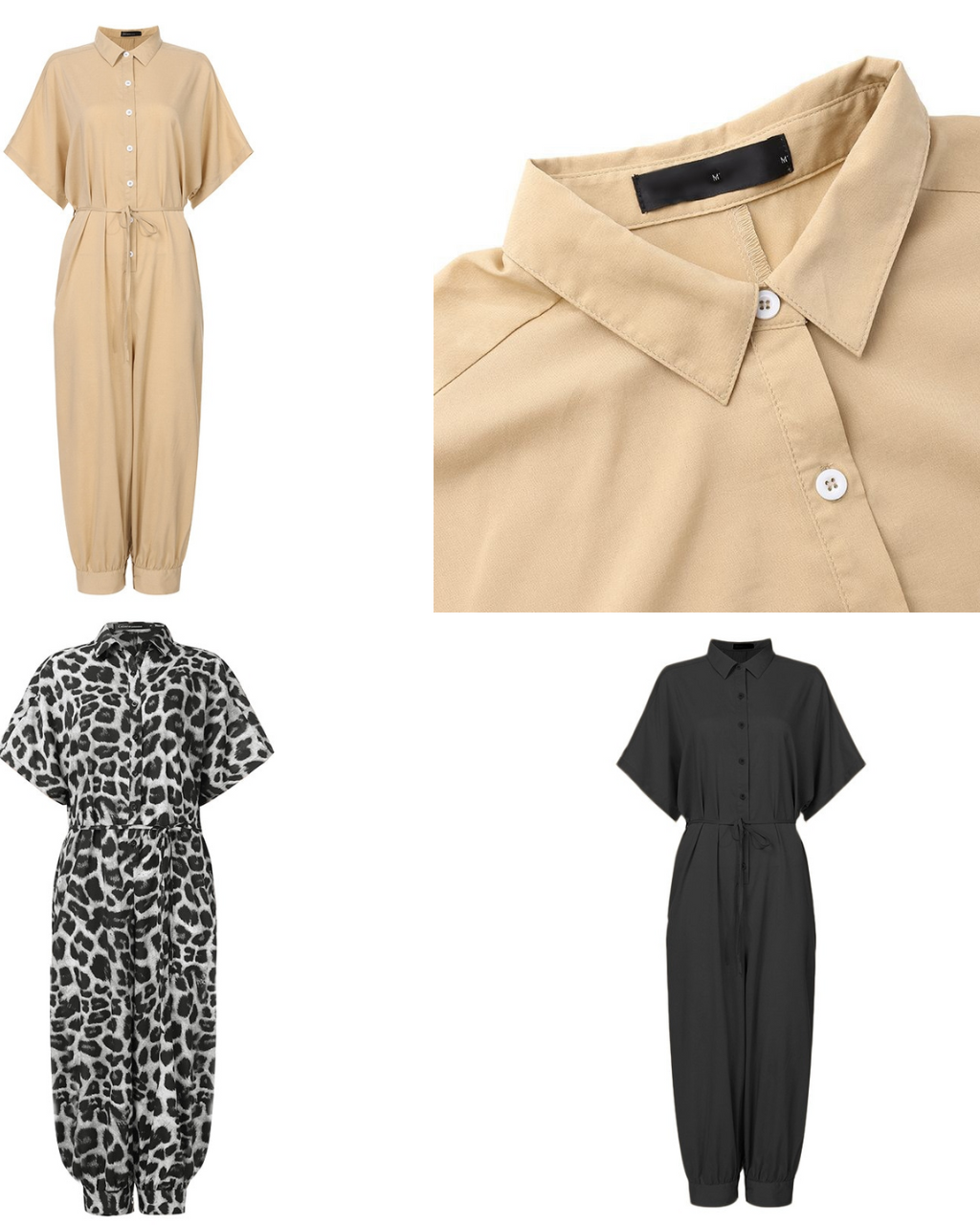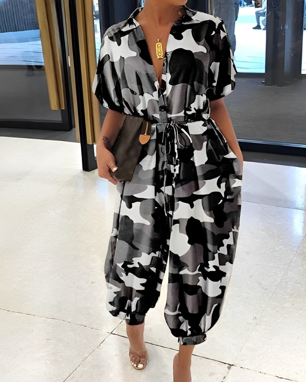 Denna bälteklänning erbjuder en modern stil och en bekväm passform. Dess knapplåst design och smala ben ger en trendig touch, perfekt för dina utekvällar eller avslappnade dagar.